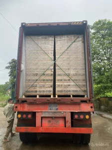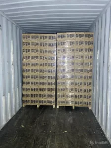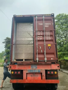 The products are neatly loaded into containers with safety and efficiency in mind, minimizing the risk of damage during transportation.